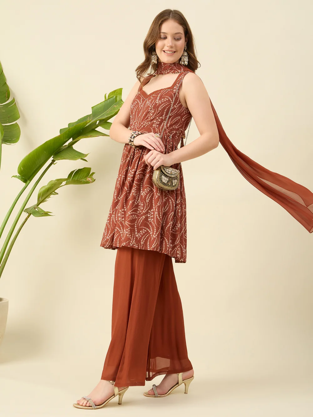 Brown Sharara Set with Dupatta