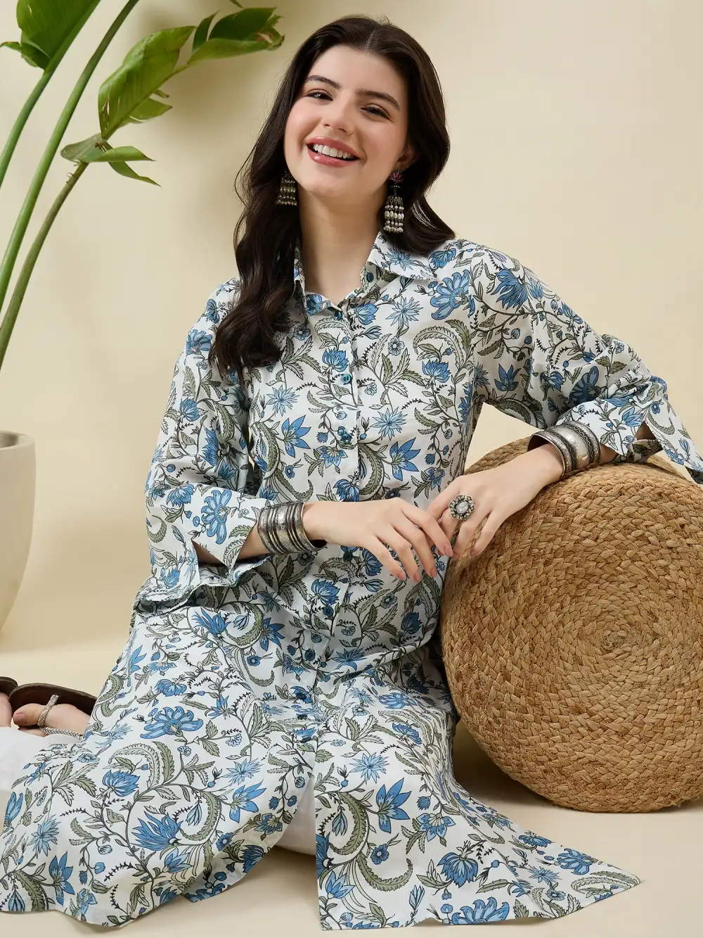 Multicolour Cotton Kurta Set features lively floral prints on breathable cotton fabric. Perfect for festive days or casual gatherings, this cheerful ensemble blends traditional motifs with contemporary comfort, bringing a playful yet elegant charm to your everyday wardrobe.